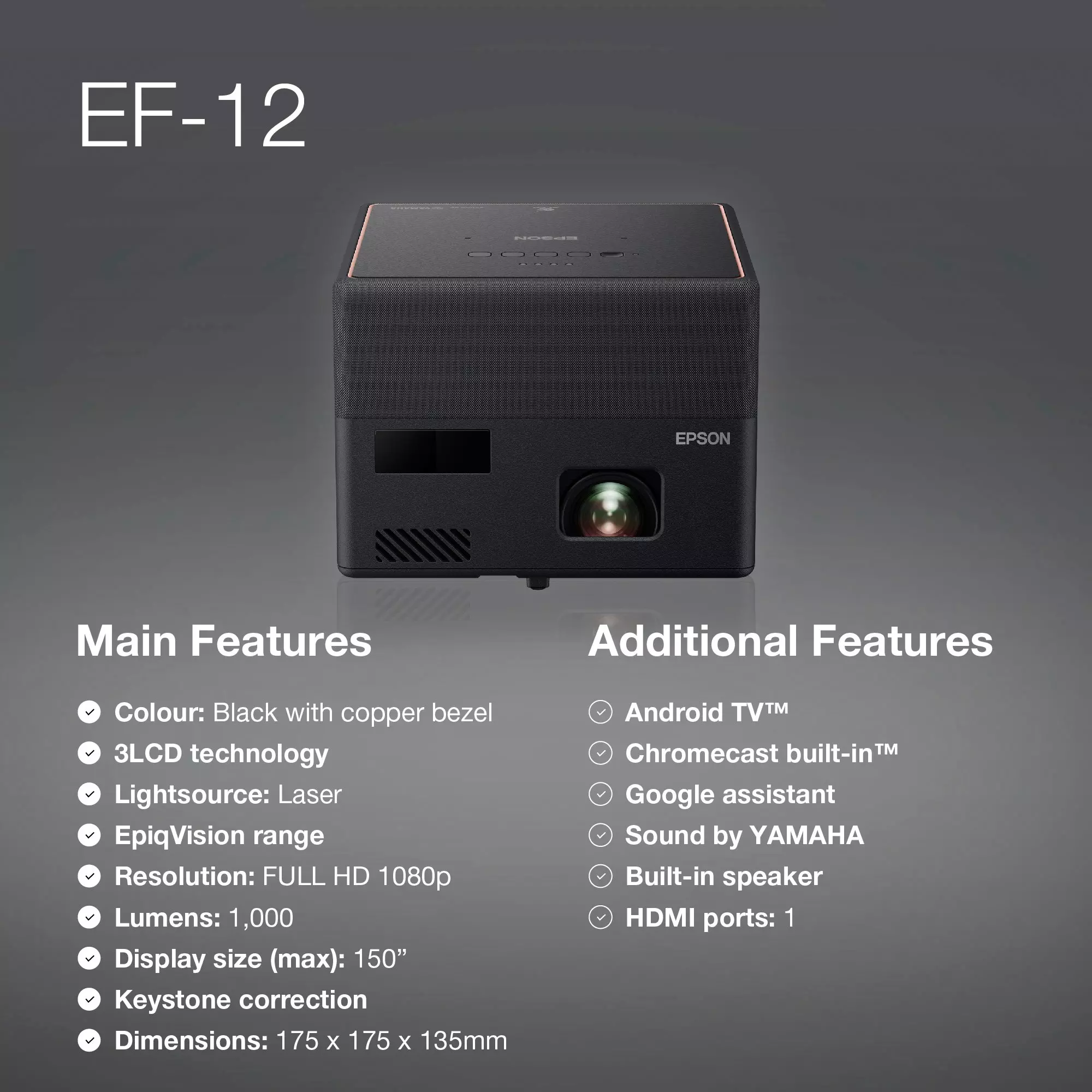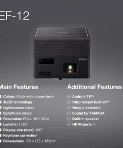 These features make the Epson EF-12 a versatile, high-performance projector, perfect for home entertainment, gaming, presentations, and more.