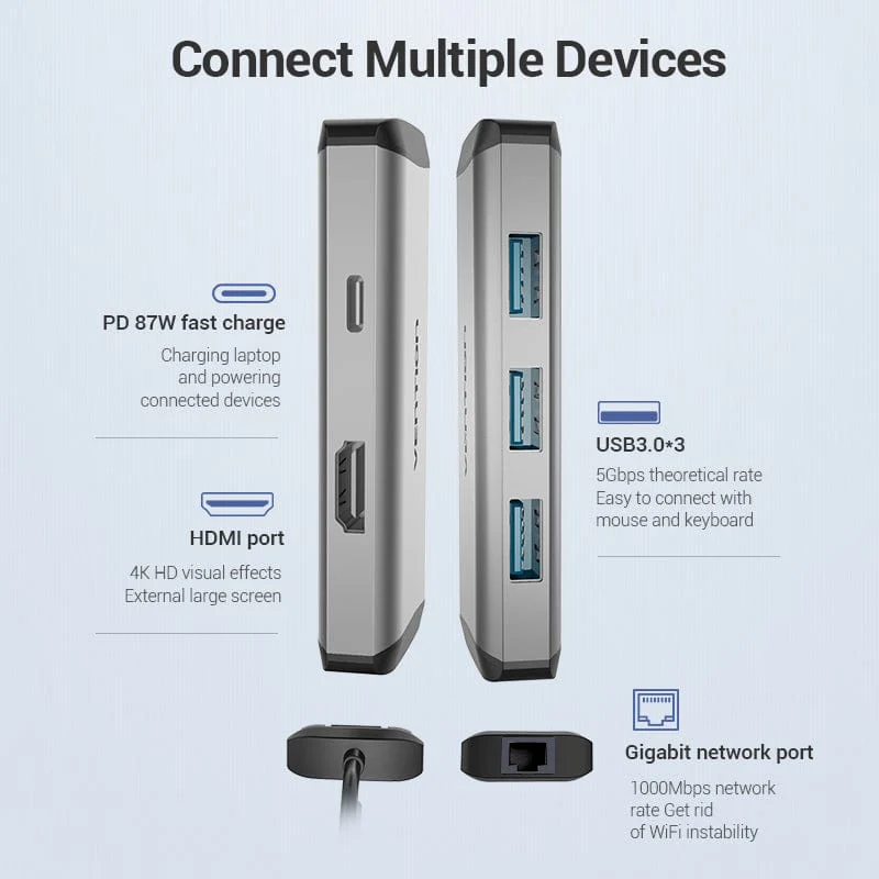 Experience the Vention Difference Upgrade your workspace with the Vention 6-in-1 USB-C Docking Station. Its sleek design, powerful performance, and versatile connectivity options make it the ideal solution for professionals and home users alike.